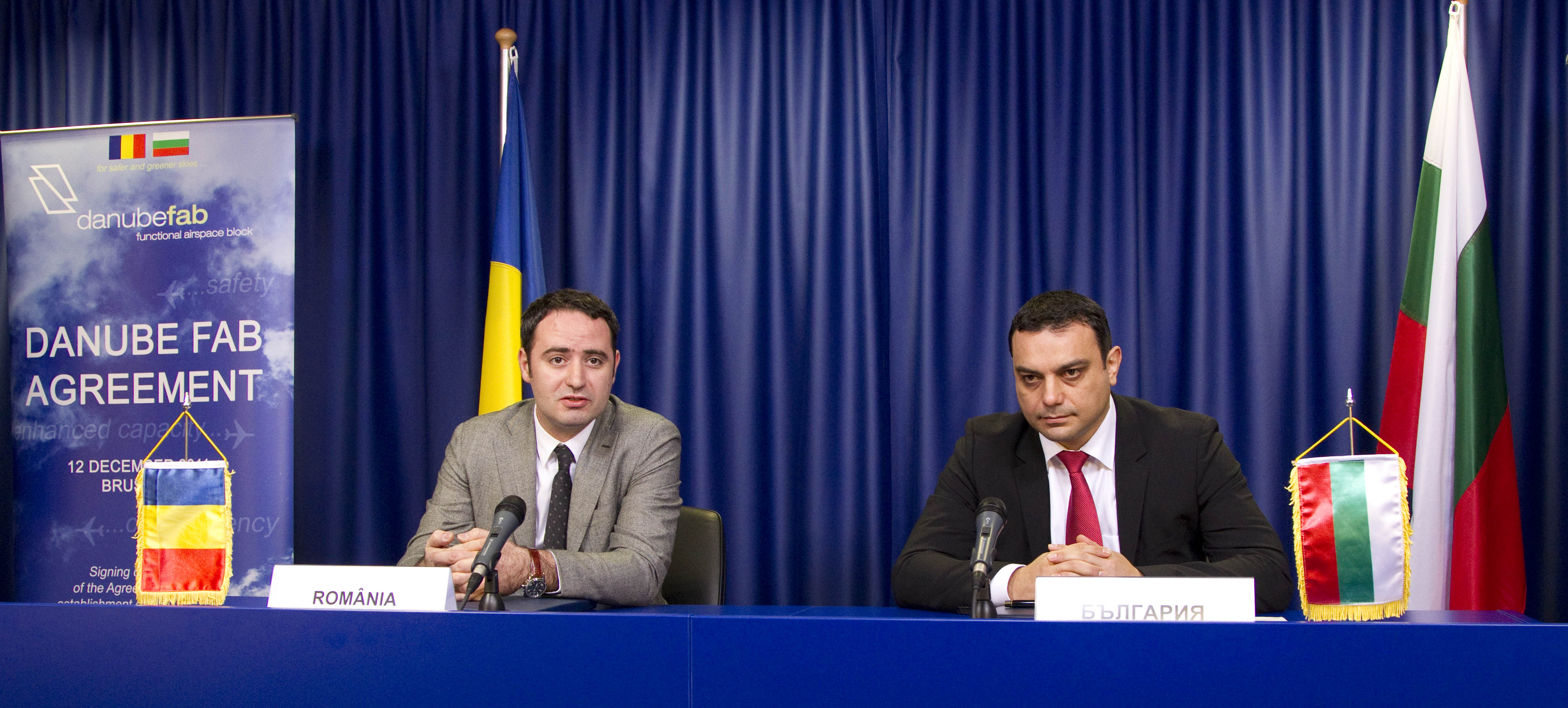 Minister of Transport, IT and Communications of Bulgaria, Ivaylo Moskovski and the State Secretary of Ministry of Transport and Infrastructure of Romania, Alessandro Nazaré signed the Agreement of establishing a functional airspace block DANUBE FAB. The signing ceremony took place in Brussels at the EU Council of Transport, Telecommunications and Energy, chaired by Poland. It was attended by the Vice President of the European Commission, Mr. Kallas and the General Director of Energy and Transport, Matthias Ryute.