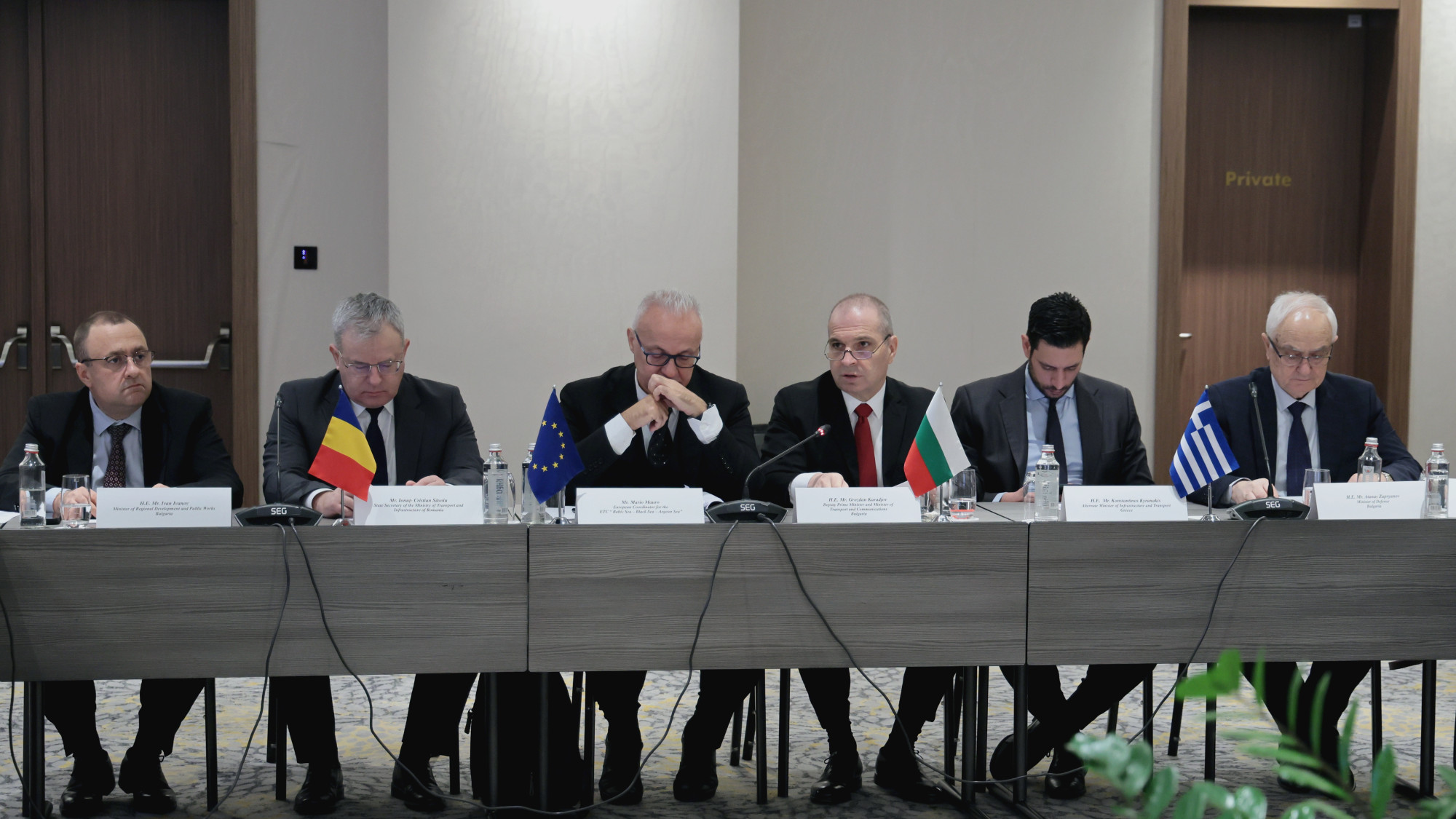 Алтернативният министър на инфраструктурата и транспорта на Гърция Константинос Киранакис подкрепи българските приоритети и подчерта, че проектите трябва да се разглеждат като единна европейска транспортна система. Той обяви, че в ход е електрификацията на двойната жп линия Пирея-Атина-Солун, модернизации по линията Солун-Кулата, и връзка от пристанище Александруполис към българската граница.